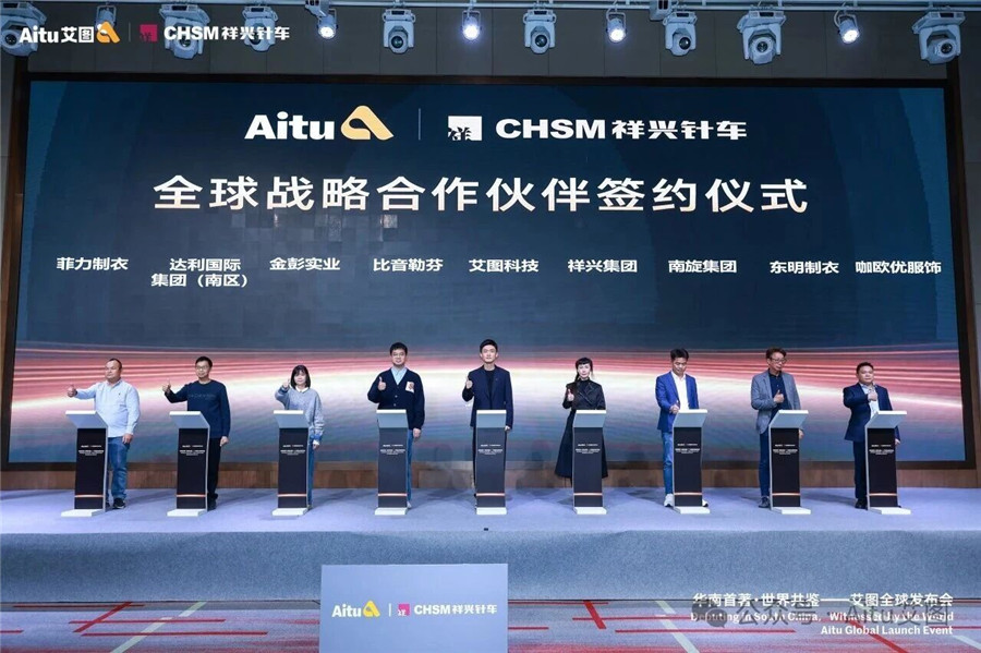 Another highlight of the launch event was the signing ceremony between Aitu and its first group of strategic partners. Representatives from leading industry enterprises—including Feili Garment, Dali International Group (Southern Region), Xiangxing Group, Jinpeng Industrial, Biyinlefen, Namlun Group, Dongming Garment, and Kaiou You Apparel—took the stage together to formally sign strategic cooperation agreements with Aitu Technology.