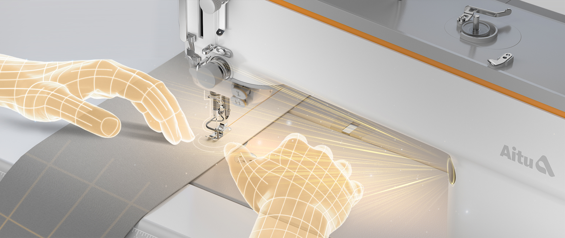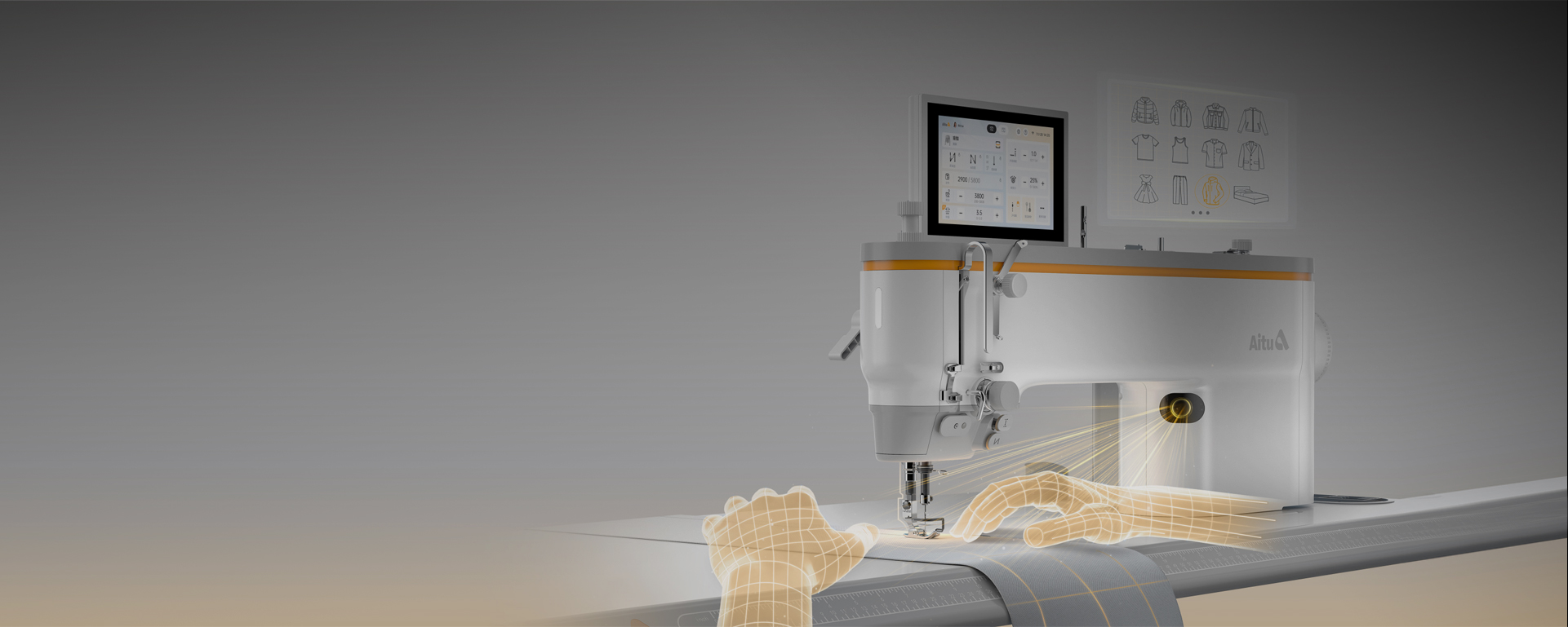 Aitu AI lockstitch sewing machine is committed to restructuring the traditional sewing process through intelligent technology to improve production efficiency and craftsmanship. Integrating clothing fabric parameter database, AI fully digital flexible feeding technology and Tianyan Fox AI vision system, it can realize precise adaptation to different materials such as cotton, linen, and leather, and support automatic process identification, disassembly, and teaching. The whole machine adopts synchronous belt structure and oil-free design, combined with the CMF concept of "industrial aesthetics + pragmatism" to create a clean, efficient and low-maintenance working environment. The body adopts a gray main color with Aitu orange interactive elements, continuing the brand's "endogenous power" design language, while reducing the operating burden through visual lightweighting.